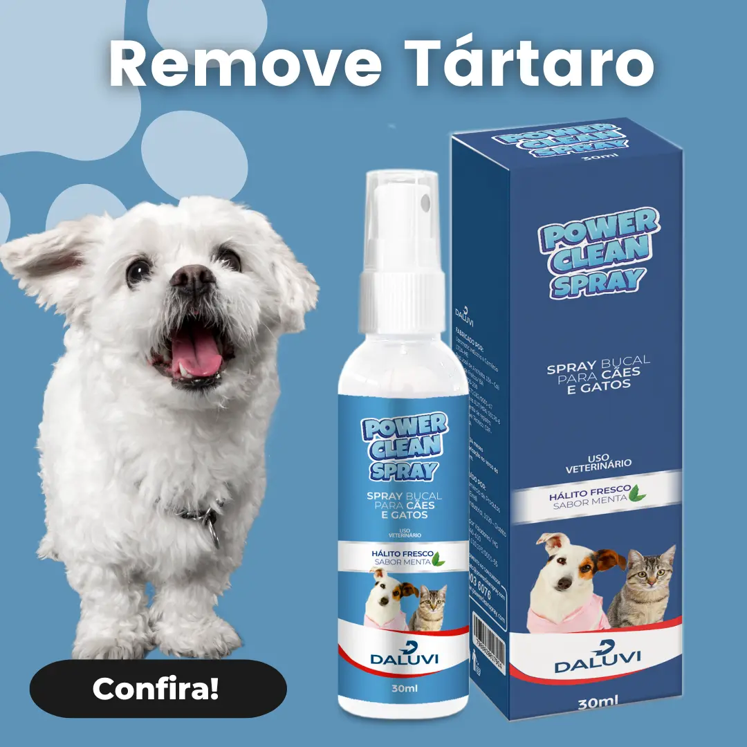 Remove tártaro e acaba com mau hálito de cães e gatos.
